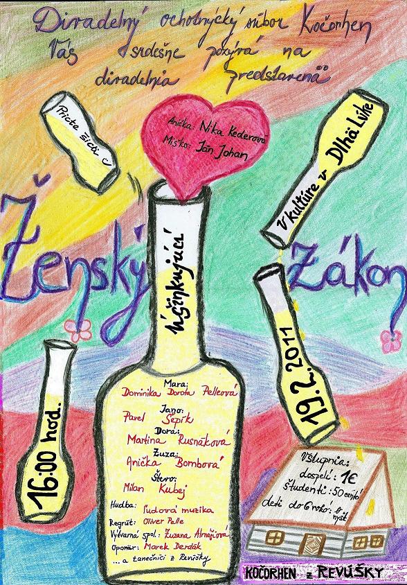 Divadelný ochotnícky súbor KOČORHEN z Revúčky nám včera v sále kultúrneho domu predstavil divadelné predstavenie J. G. Tajovského "Ženský zákon" v štyroch dejstvách.
