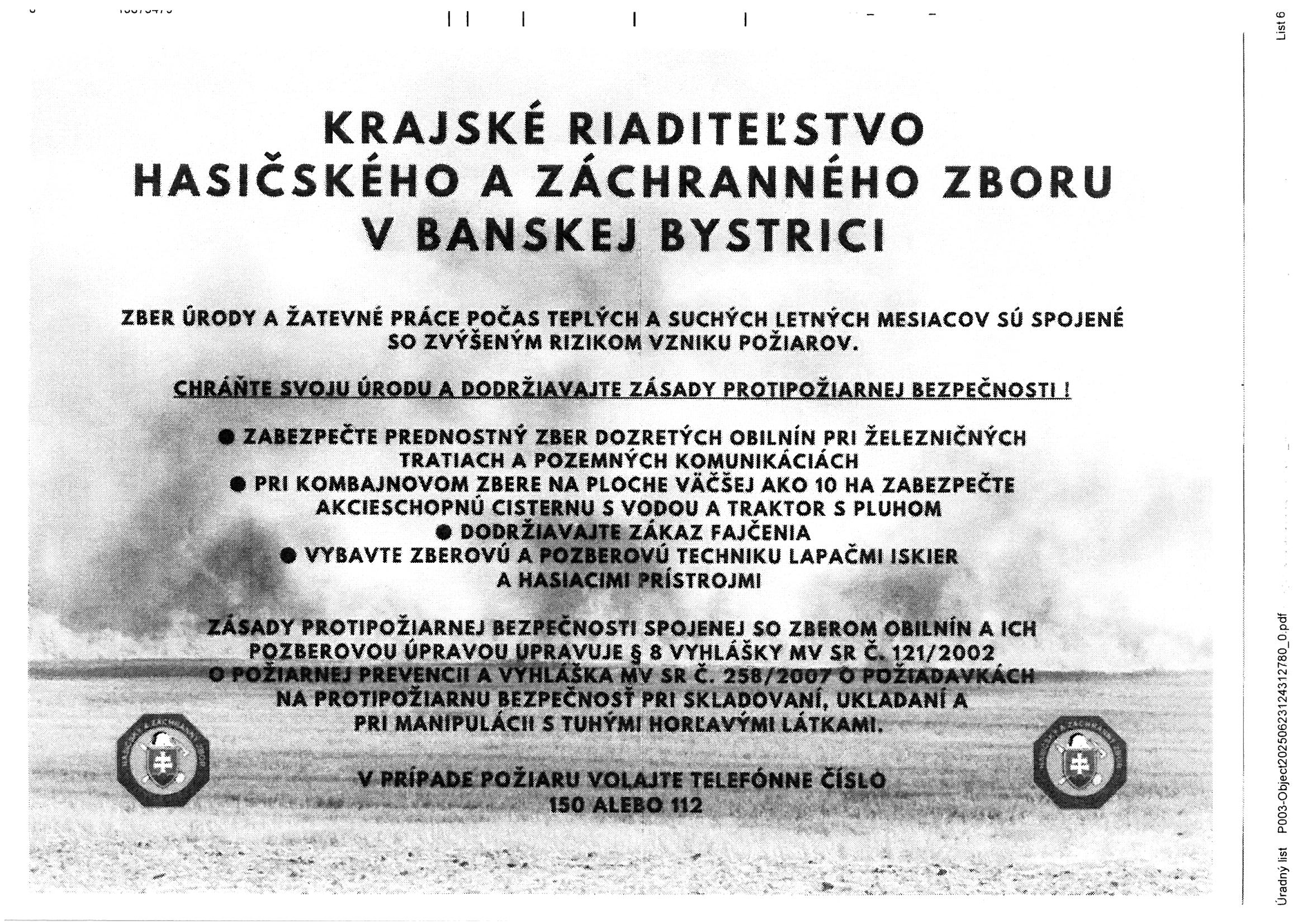 Aktualita: HAZZ zber úrody - upozornenie