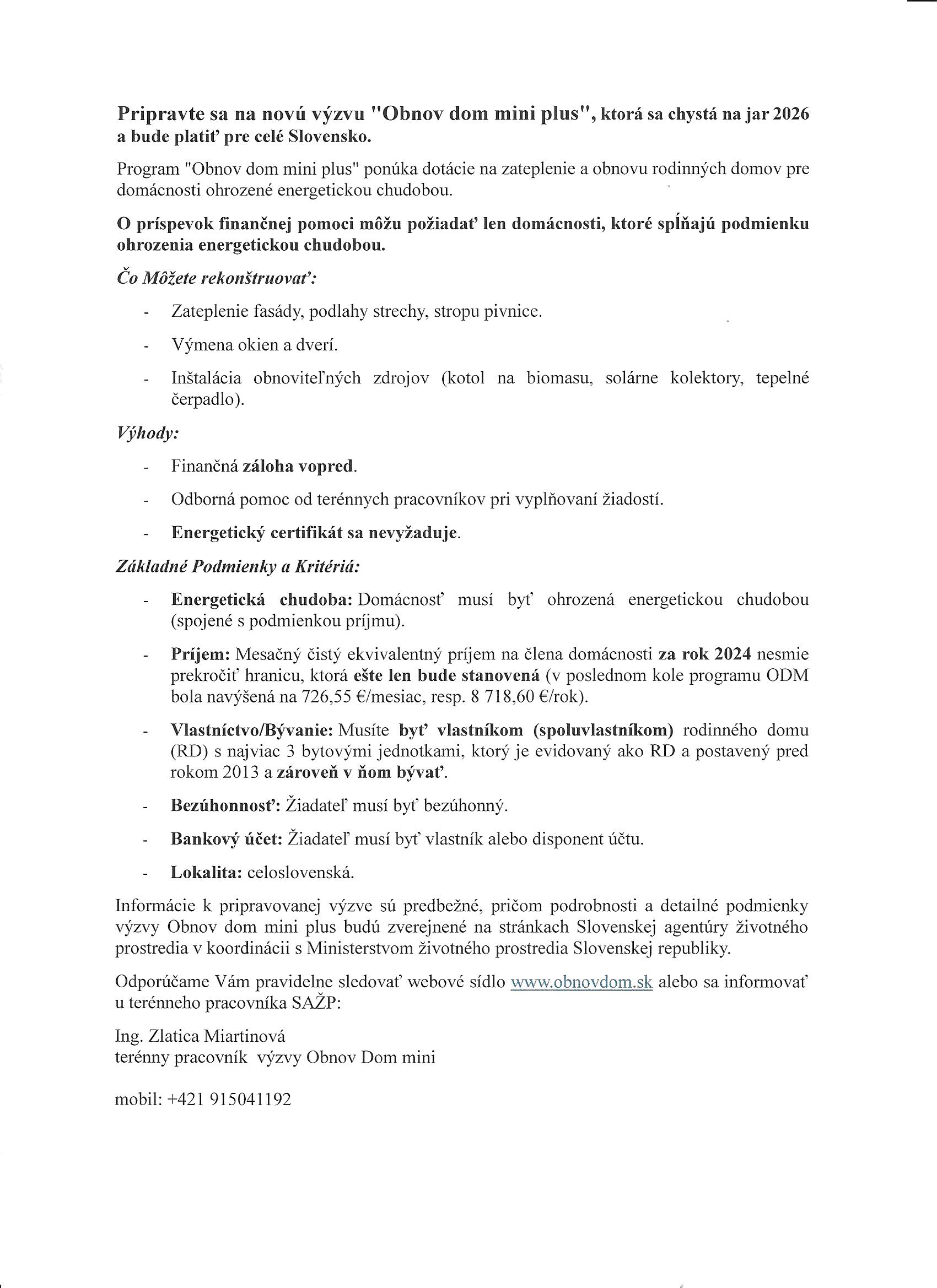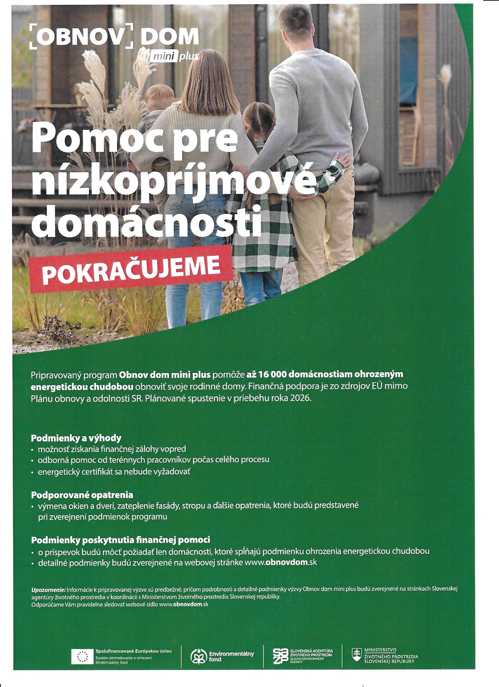 Pripravovaný program Obnov dom mini plus