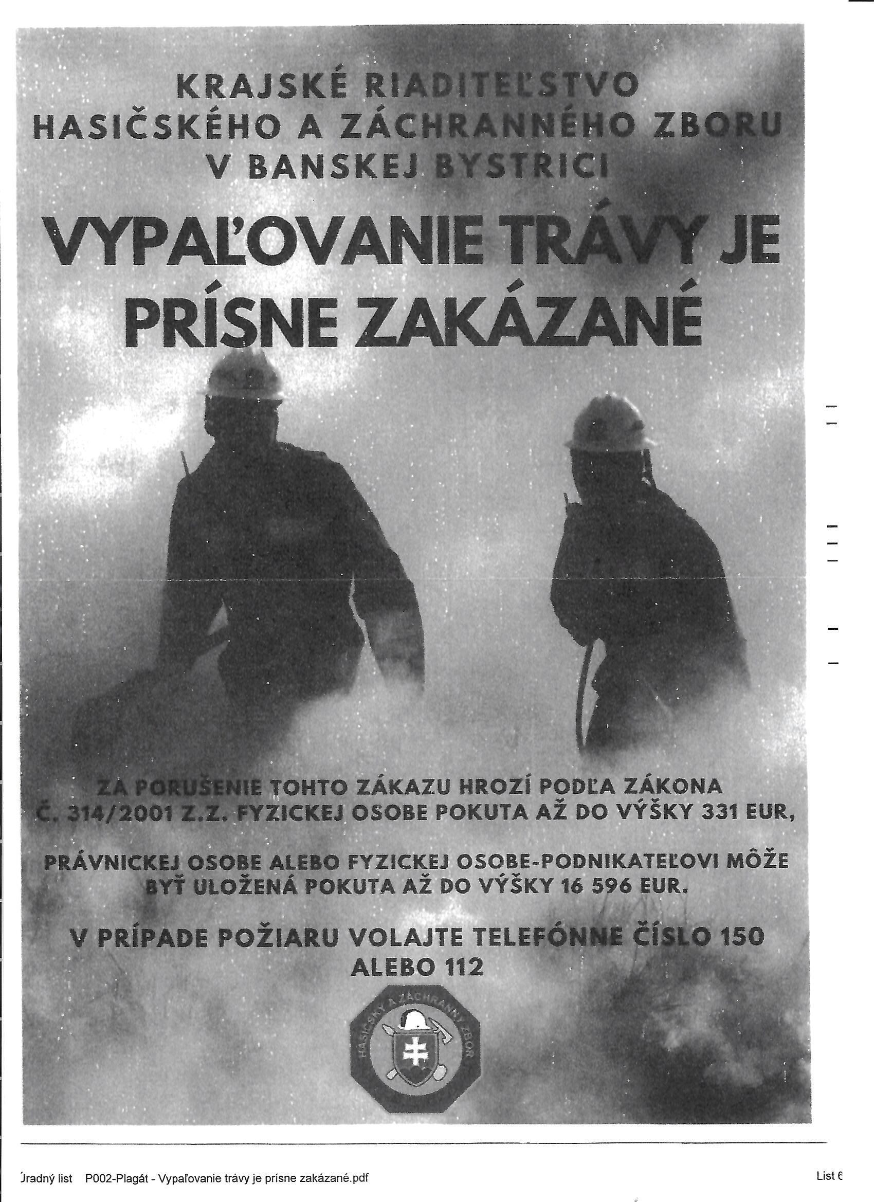 Zákaz vypaľovania porastov - Oznam HaZZ Revúca